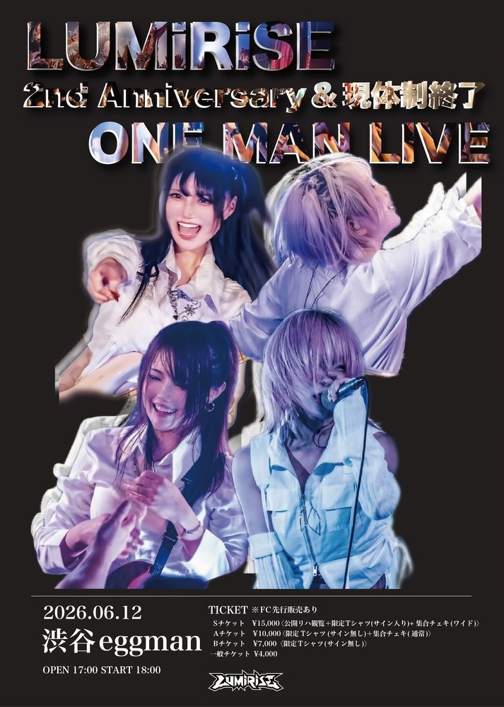 FC先行チケット販売【LUMiRiSE 2nd Anniversary&現体制終了 ONE MAN LIVE】
